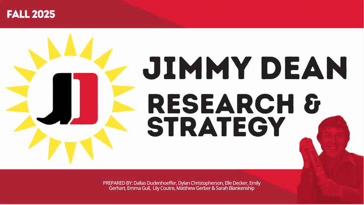 I was in charge of doing category research for the situation analysis. I dived into the frozen grab-and-go snack category by looking at industry and market research. I found relevant information in different corners of the industry, be it snacks, frozen foods, or protein-rich foods. I also was one of two creative leads on the situation analysis, developing the visual look of the report. I also worked with my team to develop our SWOT analysis for Jimmy Dean. Click the link on the first photo to read the full situation analysis!