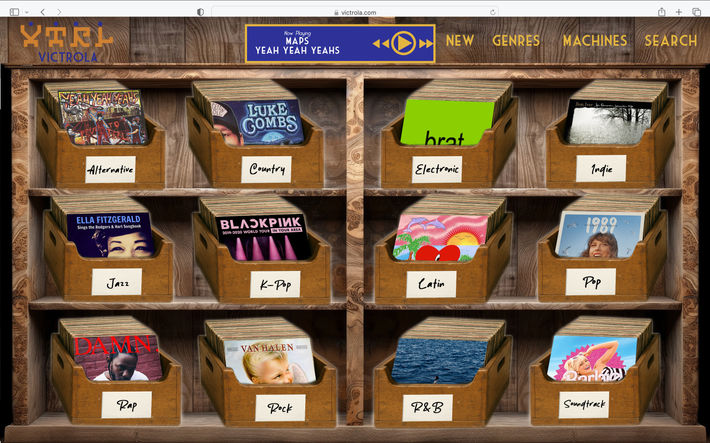 For the new Victrola website, I was instructed to focus on creating an interactive website that went beyond normal website structures. I wanted to emulate the vibe of an actual record store. Hovering above each box will cause the record at the front of the box to slightly rise up and cause a featured song from the album to begin playing. Users can see which song is playing in the navigation bar of the website. Users simply click on the record to see the next one.